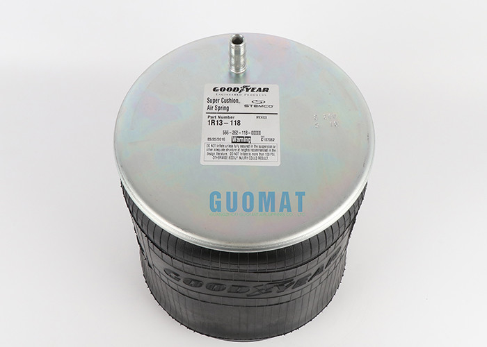 Goodyear's sleeve-type air springs will use a flexible component without internal molded beads. Connect the flexure to the end of the holder by pinching the material between the end and the outer crimp ring and then adjusting it to the appropriate diameter. Goodyear sleeve airbag springs have many applications. The most common uses are passenger springs for cars and trucks, isolators and springs for truck cab suspensions and seat springs, and many common industrial applications. 1R13-118 Goodyear Super Air Cushion® Air Spring will provide your truck, trailer or bus with long-term durability and air suspension productivity, and provide years of maintenance-free service